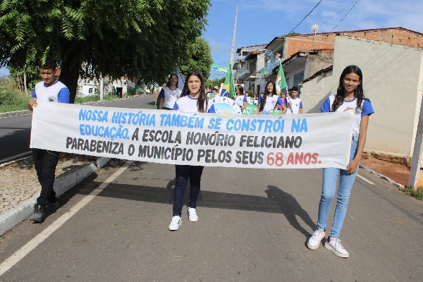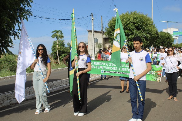 A caminhada foi marcada pela integração entre as unidades escolares e pela participação da comunidade, fortalecendo o sentimento de identidade e pertencimento à história do município. Durante o evento, o prefeito Chico Clementino (MDB) e o vice-prefeito Kleber Freiras foram homenageados em reconhecimento ao trabalho desenvolvido na administração municipal.